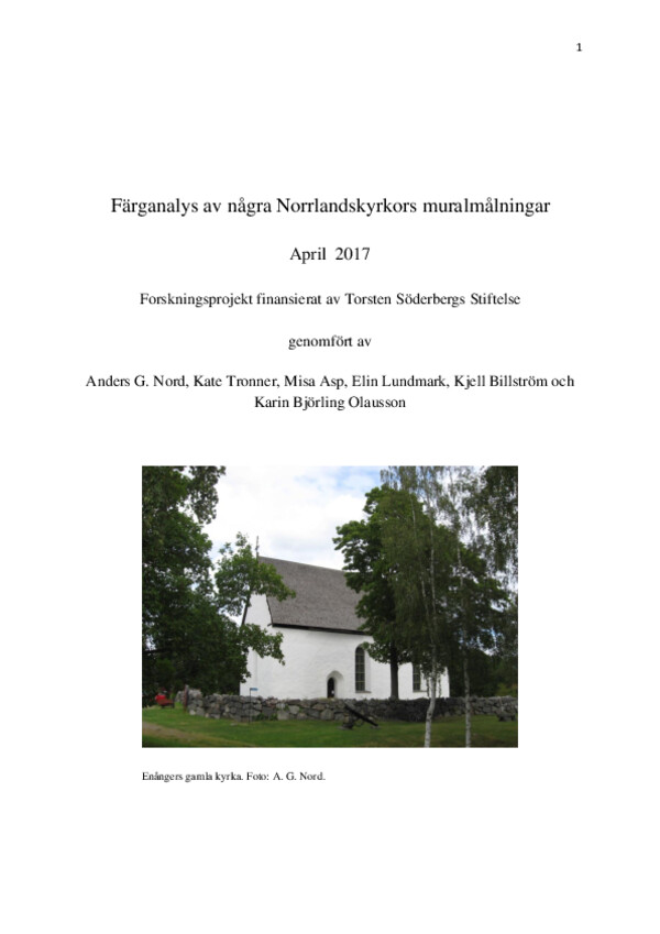 Färganalys av några Norrlandskyrkors muralmålningar april 2017: forskningsprojekt finansierat av Torsten Söderbergs Stiftelse