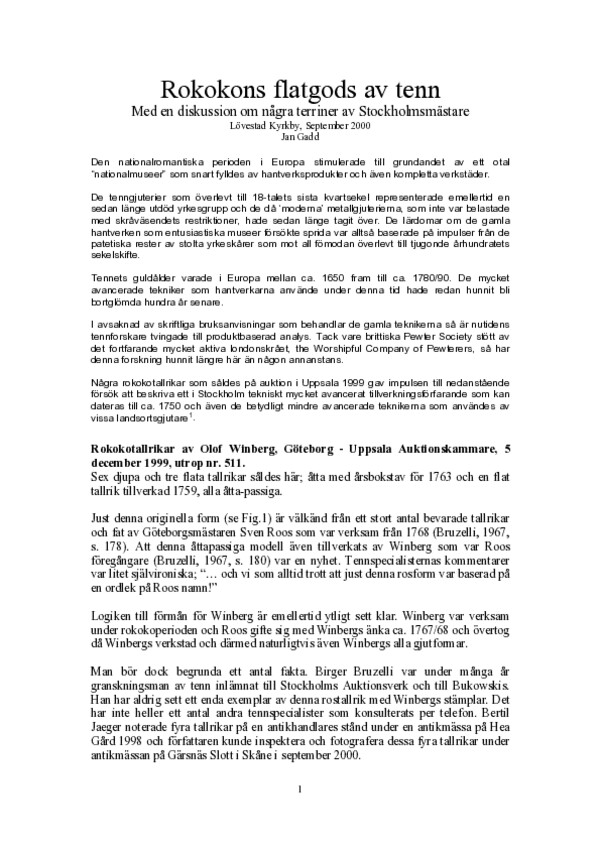 Rokokons flatgods av tenn: med en diskussion om några terriner av Stockholmsmästare